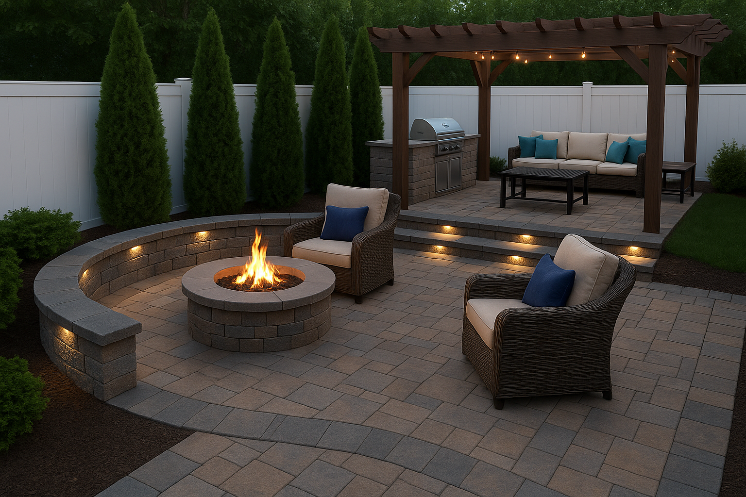 | Lighting (Hardscape & Steps) | Steps, wall, and under-cap LED lighting | $1,500 – $3,000 |